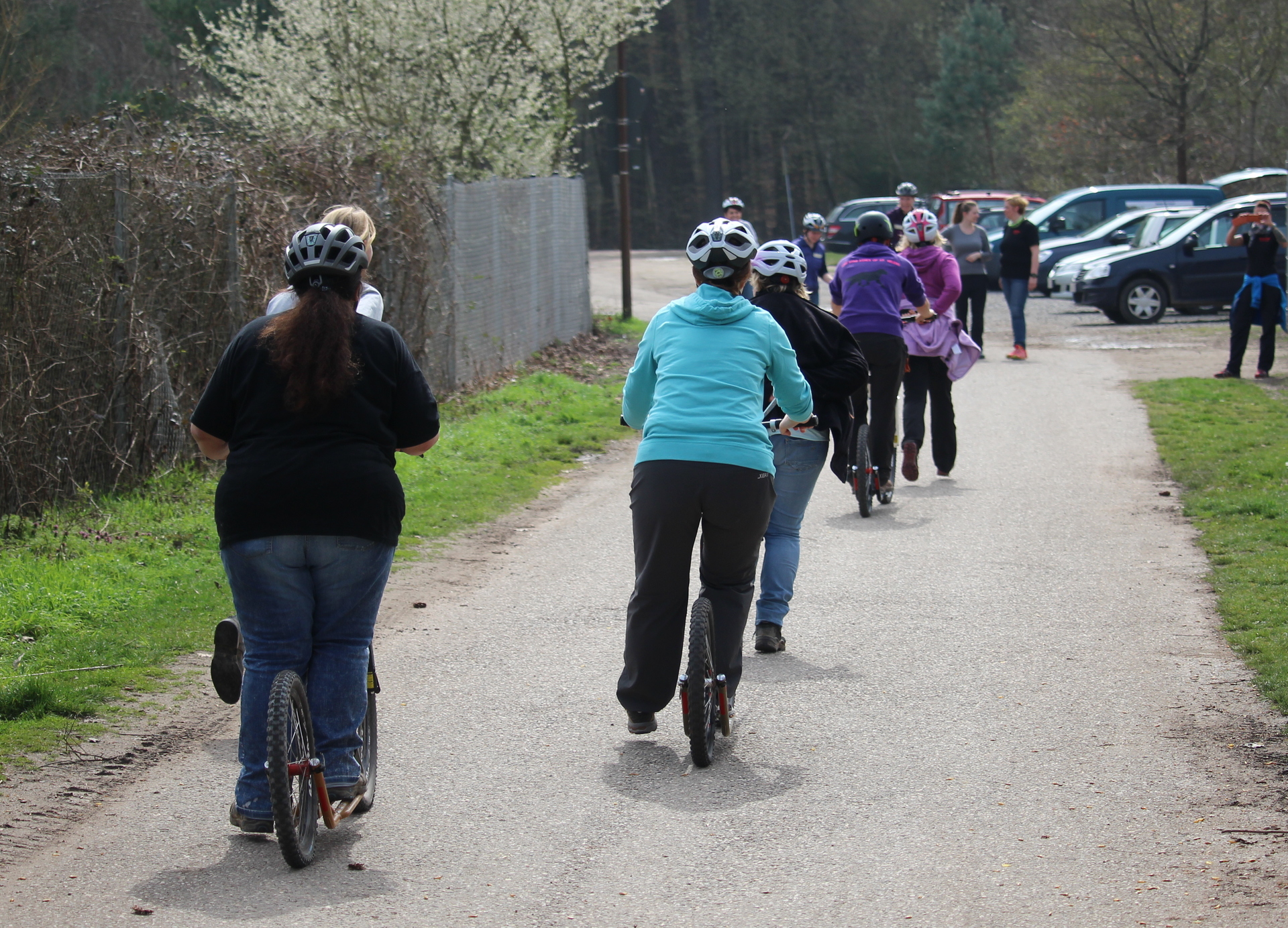 Bei einem Anfängerseminar lernten 8 Mensch-Hund Teams den Zughundesport näher kennen. Nach einer ausführlichen Theorieeinheit, bei welcher die Teilnehmer die Geschichte des Zughundesports, die verschiedenen Arten wie Canicross und Bikejöring und die richtige Ausrüstung für Mensch und Hund kennen lernten, ging es zu den ersten Fahrübungen um das richtige Handling mit dem Scooter zu erlernen.