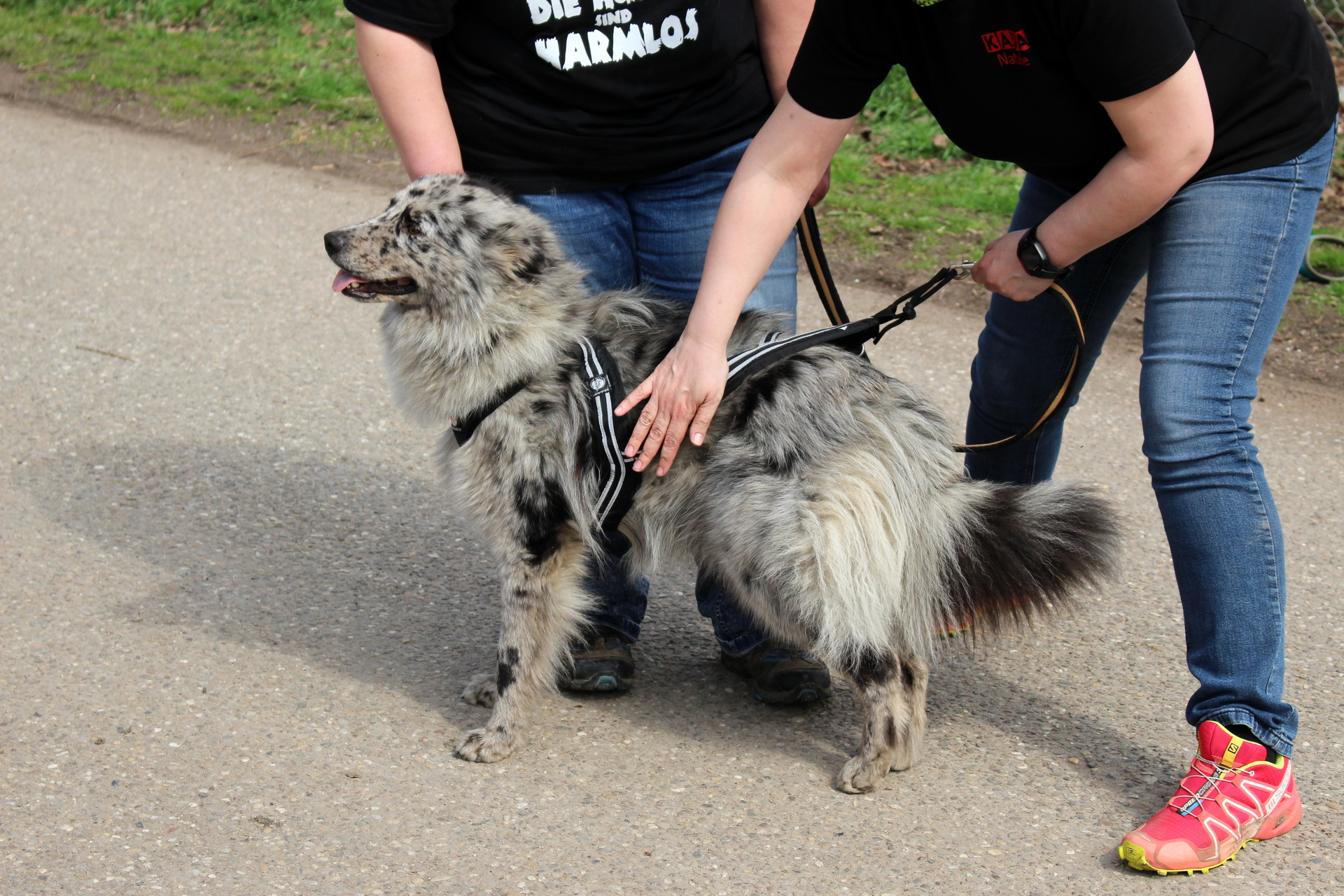 Nachdem diese mit viel Spaß, jedoch auch „Aha“ – Momenten, wie viel der Hund vor dem Scooter eigentlich leistet, absolviert waren, kamen nun auch die Hunde zum Einsatz. Behutsam wurden sie an die ersten Schritte als „Zughund“ herangeführt – und so mancher zeigte hier bereits sein Talent.